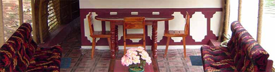 A house boat is about 67 feet in length and has a width of around 13 feet in the middle. The materials that go into the making are all local and Eco friendly bamboo poles, coconut fiber ropes, bamboo mats, coir carpets etc. The main wood used is "Anjili". The house boats have fully furnished single and double rooms with sundeck, private balcony with comfortable chairs, kitchen and toilet with WC. In addition there is also separate rest room for the crew. Traditional lanterns are used as lights. The crew includes a chef and two oarsmen. The cuisine is traditional Kerala flavour with the local specialities; delicious fish and prawns. There are single bedroom houseboats for two people and two bedroom houseboats for four people.